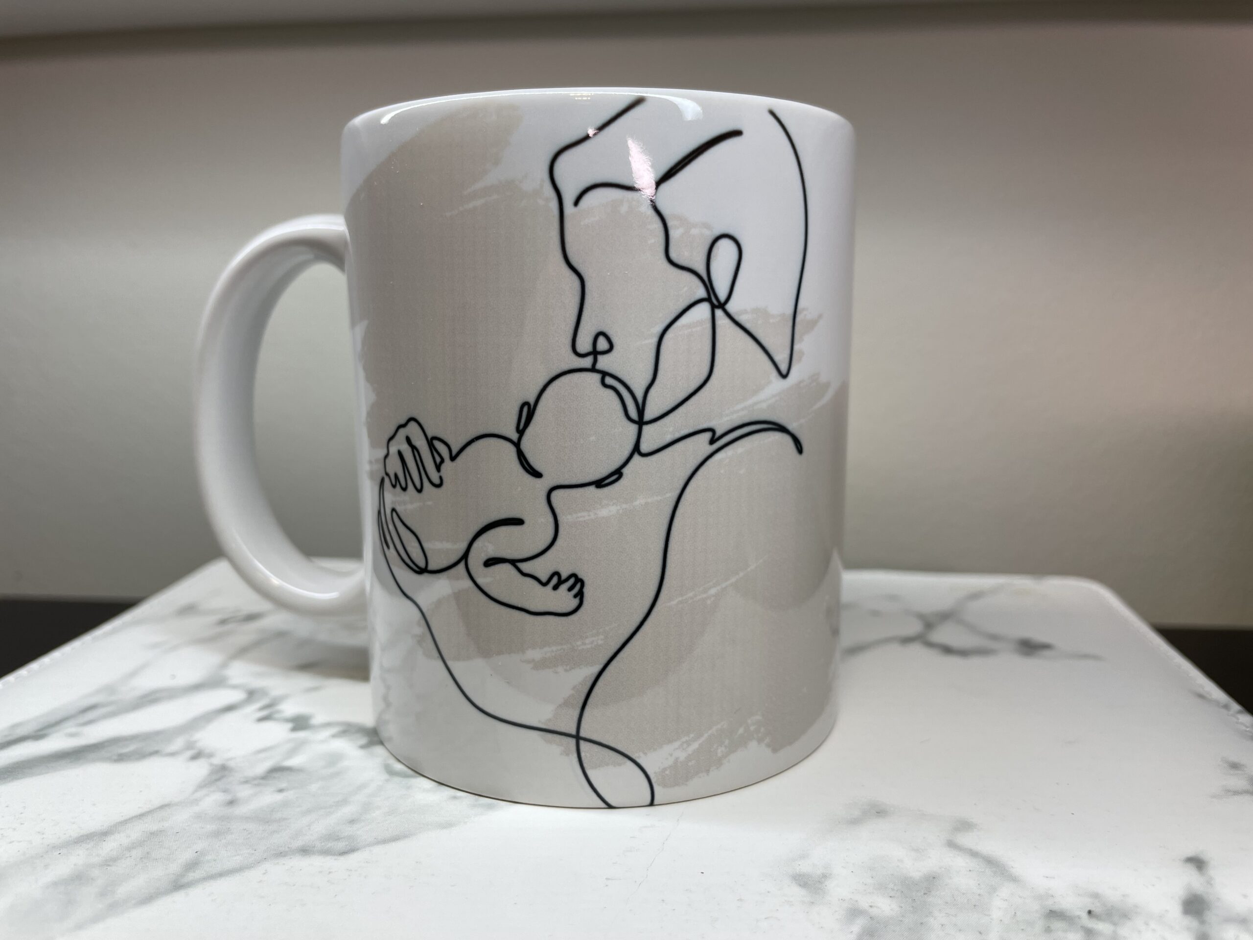 Sinu valitud pilt ühele poolele ja tekst läheb teisele poole tassi.